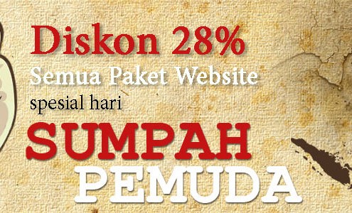 Menyambut hari sumpah pemuda, diskon 28% semua paket website