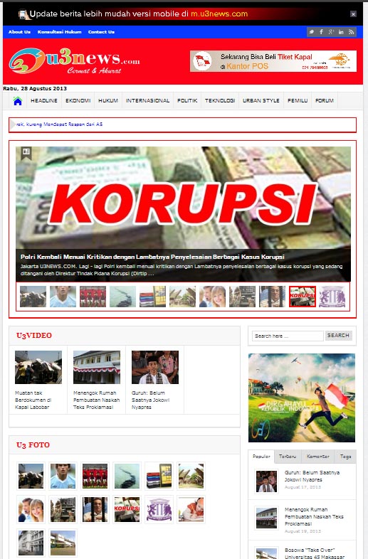 Wensite Portal Berita dari PT.Sambabo Indah Creasindo, dengan alamat redaksi : Gading Icon City Apartemen Jl.Perintis Kemerdekaan Kav 99 Pulo Gadung Jakarta Timur. web : www.u3news.com